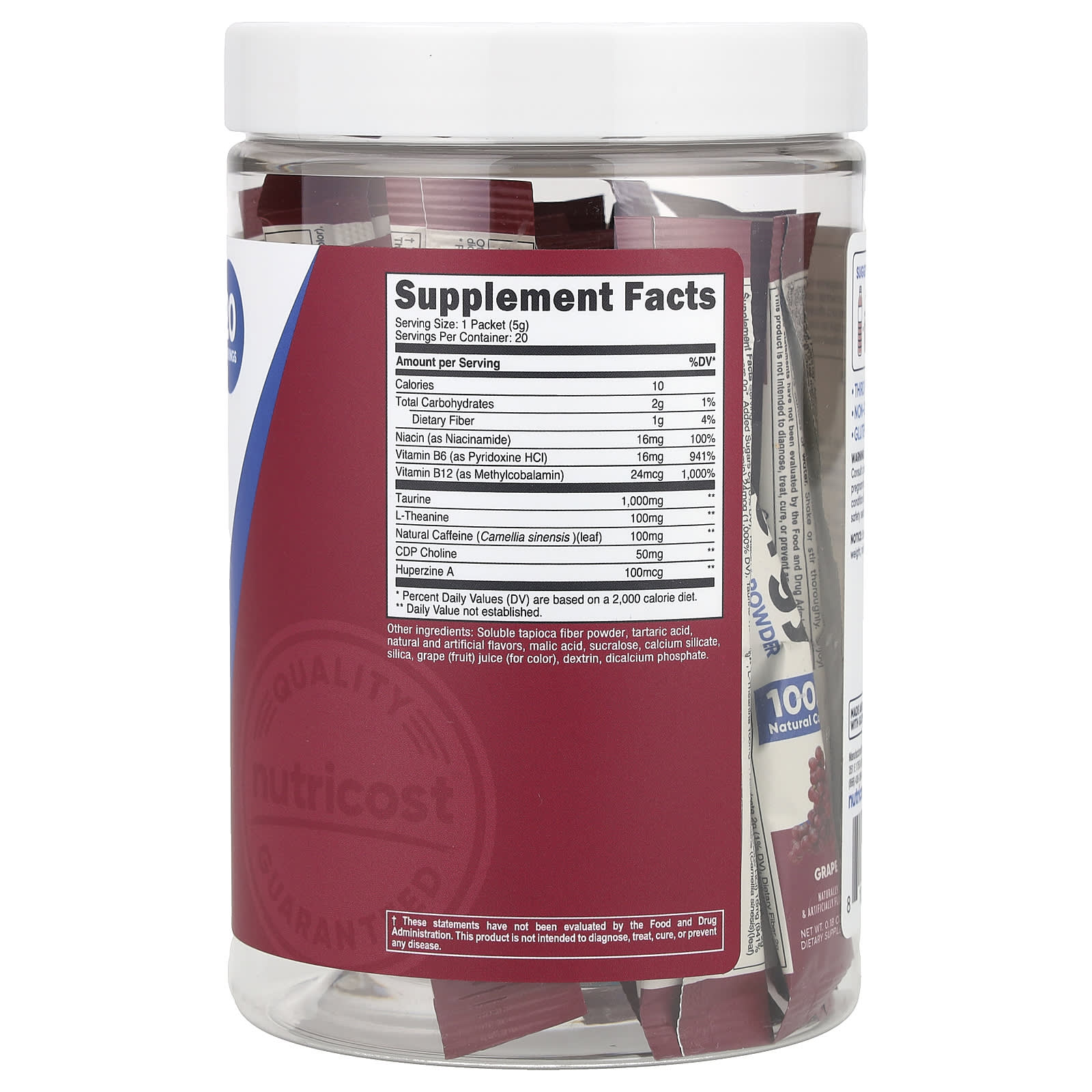 Nutricost, Кофеин, 100 мг, 250 капсул