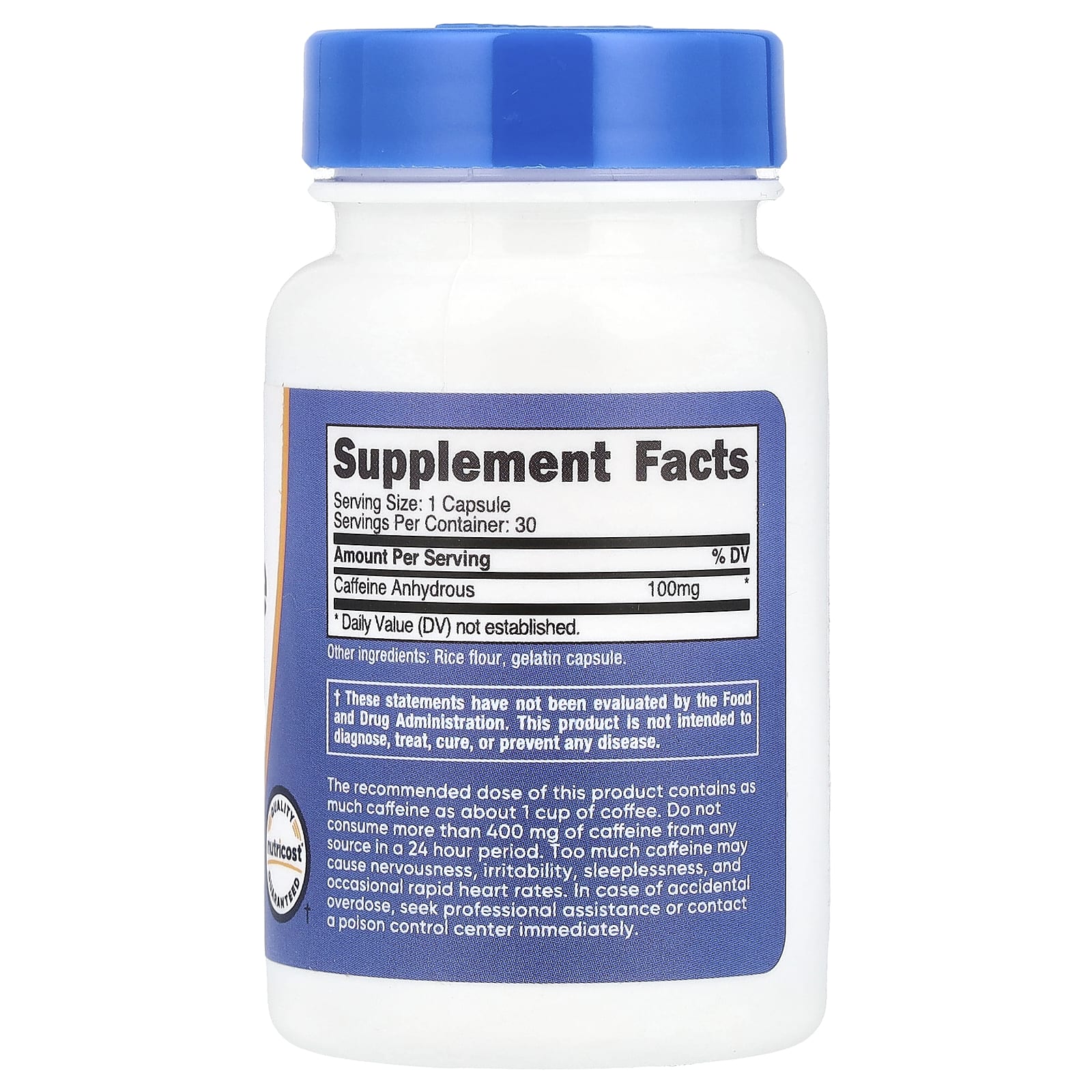 Nutricost, Кофеин, 100 мг, 30 капсул